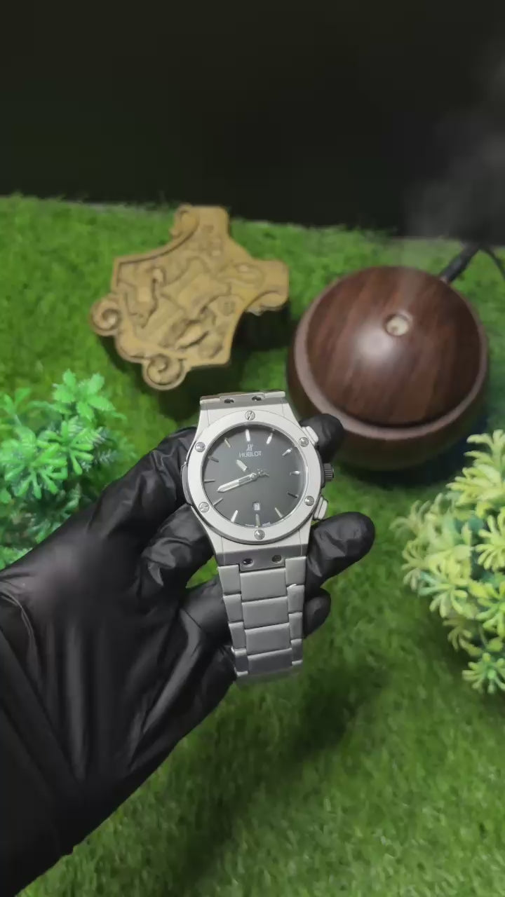 Timeless, sleek, and effortlessly classy — this black-dial Hublot is made for those who appreciate subtle luxury. With its stainless-steel strap and minimalist design, it complements every outfit with pure sophistication. ✨